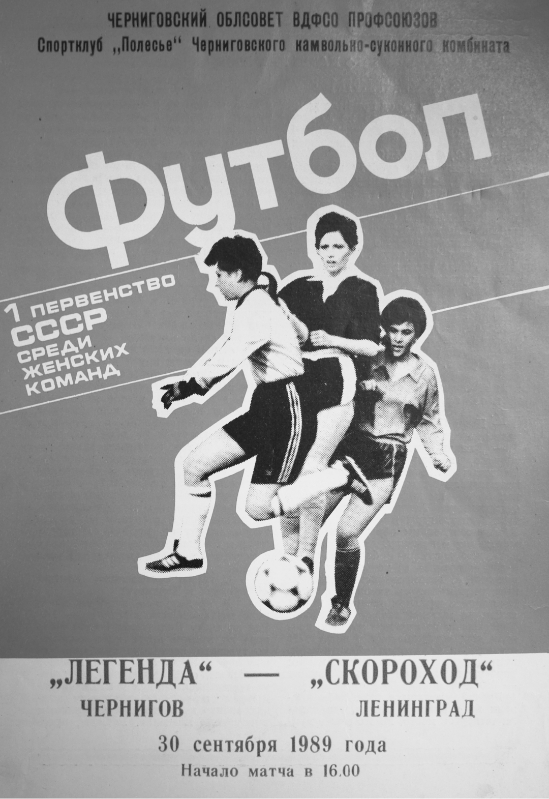 Программка матча клуба «Легенда» (Чернигов) — «Скороход» (Ленинград) 30 сентября 1989 года.